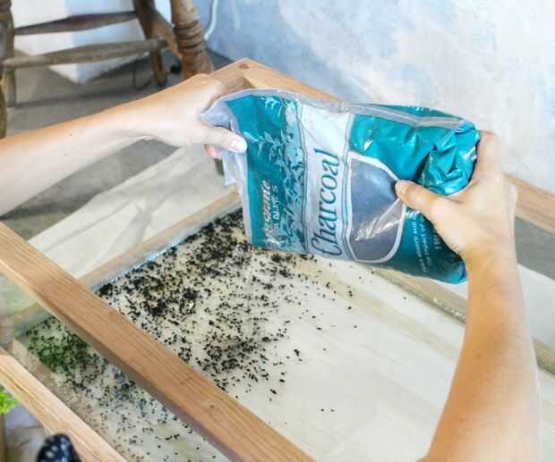 Poner una capa fina pero sólida de carbón en el suelo de vidrio entero.
