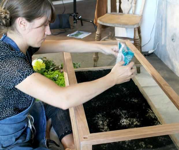 Use sus manos para alisar hacia fuera y crear algunas pequeñas colinas y valles para un paisaje dinámico. (especialmente a lo largo de los bordes del vidrio)