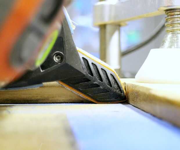 * Usé Black & Decker lijadora de Multi 4 en 1 SmartSelect. Es bases intercambiables y sujeción de dedo, me permitida rápidamente retirar el acabado de casi toda la superficie de la puerta. Sólo necesitaba hacer un poquito de lijado a mano en el interior las esquinas. Boom!