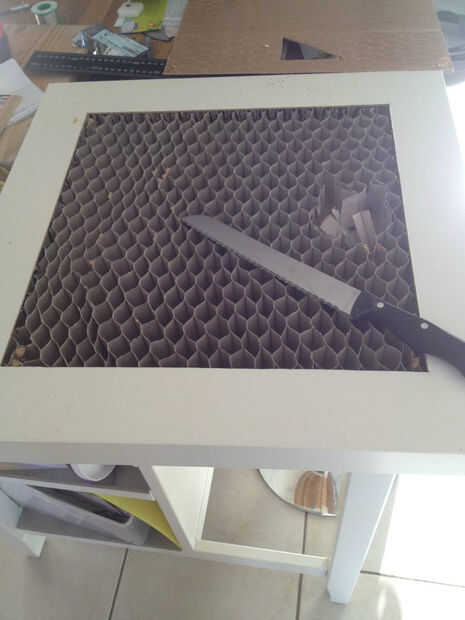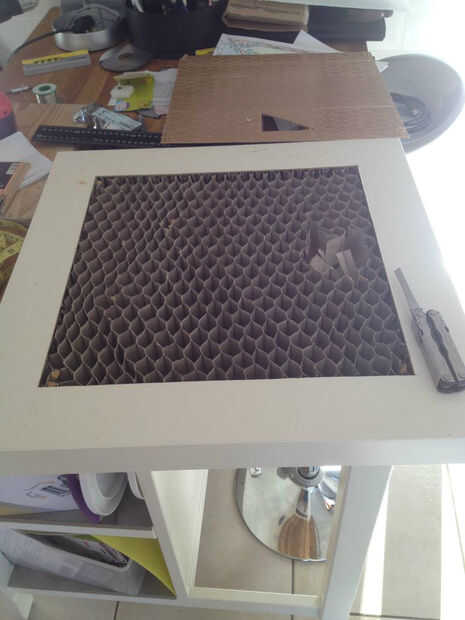 Feliz con lo que he encontrado, corte el cuadrado y quitar el cartón de nido de abeja dentro.