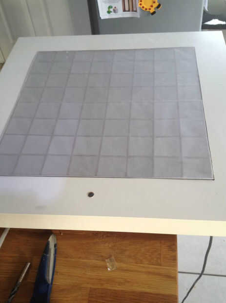 Corté un agujero en la parte inferior de la tabla para permitir que un cable de usb caber a través.