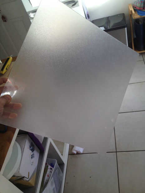 Consigue un trozo de metacrilato del mismo tamaño que la matriz y cubrir en película de la ventana helada. Si usted puede encontrar metacrilato pre helado entonces esto puede ahorrar un esfuerzo. Para mayor difusión, usé papel impermeable a la grasa.