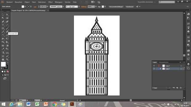 La imagen del Big Ben se adapta en capa 1. Ahora vas a trazar esa imagen en la capa 2.