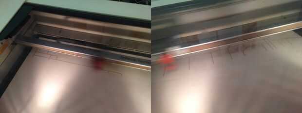 - Para cortar piezas completamente, ajustar las líneas al rojo (RGB 255, 0, 0) con una anchura de 0,01 mm