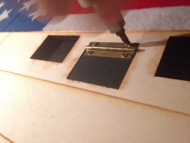 Las ventanas se han secado completamente, puedes instalarlos en tu tablero. Utilicé estas bisagras muy pequeñas que se hacen para casas de muñecas, pero tal vez usted puede subir con algo mejor. Quería moverse, para que pueda ver ambos lados de una ventana.