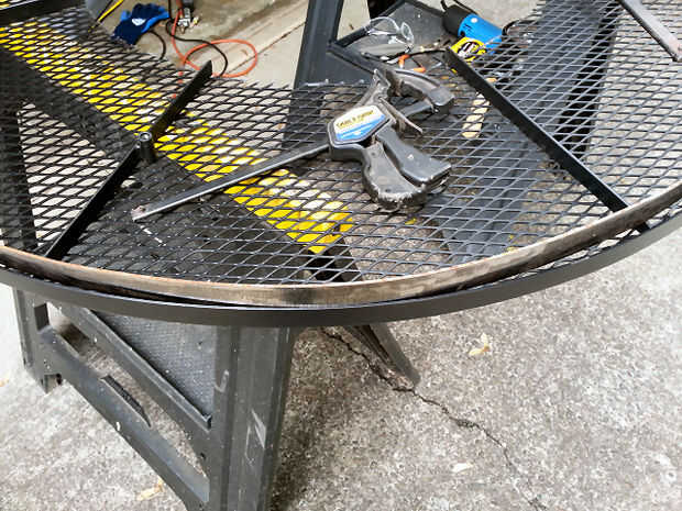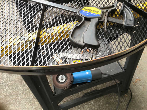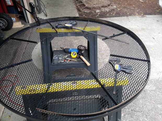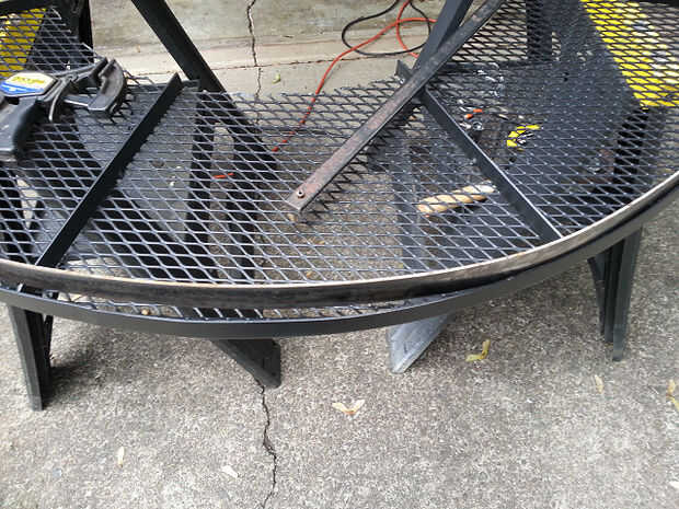 Una vez que el metal se limpia lo suficiente que puede empezar a doblar en un círculo. Iniciado por sólo llegar a sentarse en el borde exterior de la tabla y continuó trabajando hasta que se acerca la mitad del diámetro de la tabla. Toma pocos minutos y lo bueno de metal es que puede libra retroceda con un martillo u otra cosa. Trabajar sólo lentamente su ubicación alrededor de la longitud de la barra plana y puso pequeño, ligero, leve curvas para conseguir comenzar dando vueltas en sí mismo.