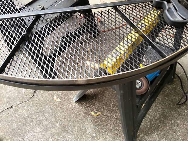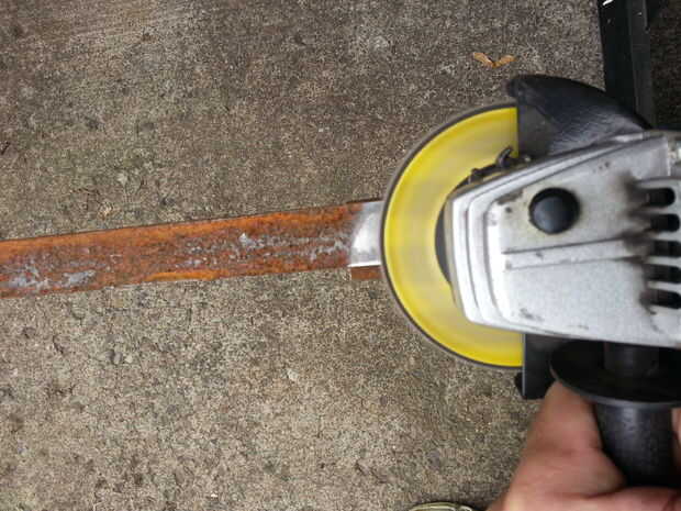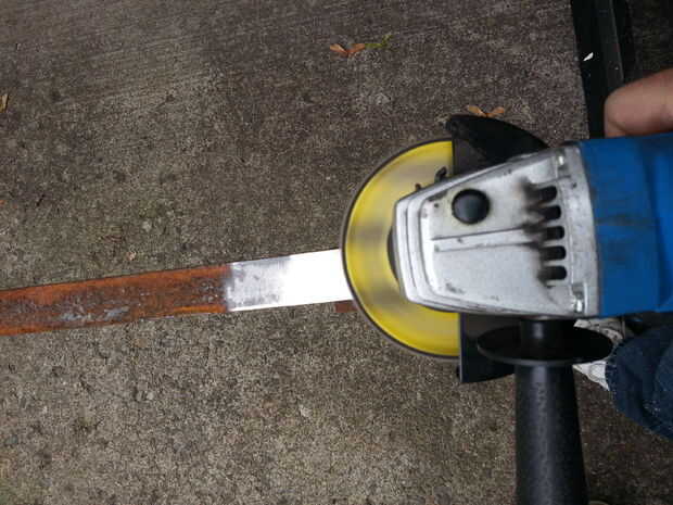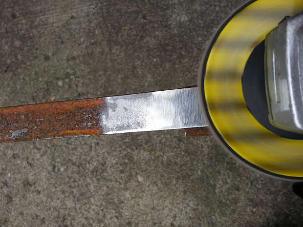 Utilicé un disco de la aleta para limpiar el metal de la superficie de óxido (muy común en una yarda de la chatarra como se sienta al aire libre) que es inevitable en el valle Willamette de Oregón. El disco de la aleta hace un trabajo muy rápido de esto en unos pocos minutos y es brillante y brillante.