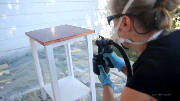 Una vez que la mancha se había secado completamente, había rociado toda la tabla usando una capa superior a base de agua con un pulverizador HVLP. Esto es realmente agradable si usted tiene la opción, de lo contrario sólo pincel sobre la capa superior. Es muy agradable usar un poliuretano a base de agua si estás terminando un pedazo blanco de muebles, ya que a base de aceite tiende a dejar un tinte amarillo.
