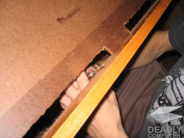 Finalmente, decidí que porque había 2,25 pulgadas extras en el interior de la bandeja, le cortó una parte de las piernas, insertar detrás de él. (la imagen describe mejor)