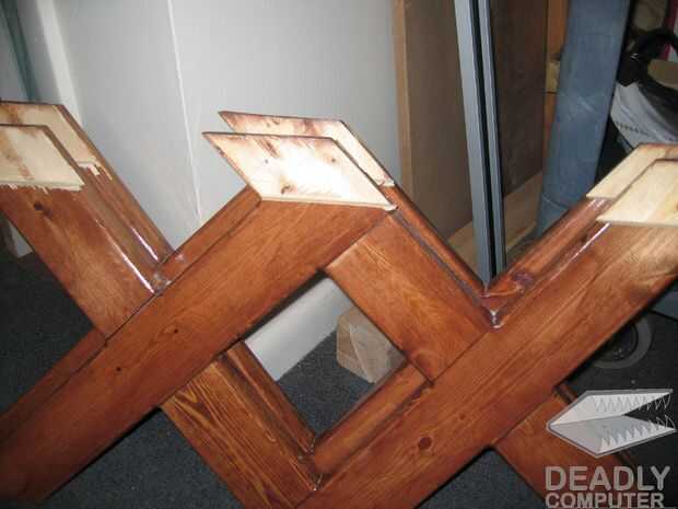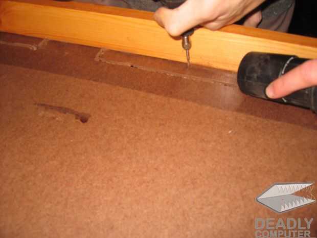 Esto es donde hice una ligera modificación a mi mesa de diseño. Originalmente, tenía las patas atornilladas en el exterior de la bandeja, pero después de recibir las opiniones de mis amigos, descubrió que eso no es exactamente la solución mejor aspecto.