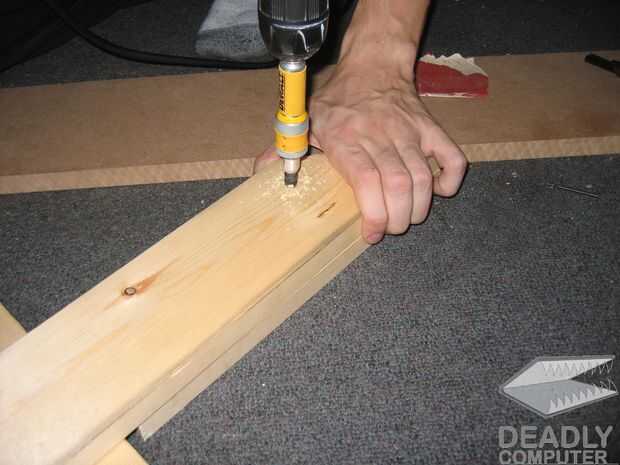 Yo soy doblar la madera para que se vea mejor, requiere un montón de cortes y tornillos. Perfore previamente los orificios y se hunden en los tornillos para que no los ves.