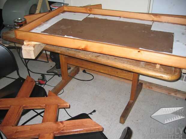 La bandeja puede hacer cualquier tamaño que desee (siempre y cuando sea mas grande entonces el tamaño mínimo eres tableros pueden caber en). El mío es 46 x 31 pulgadas