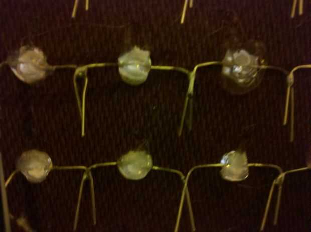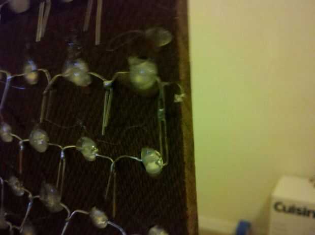 OK ahora tienes la ímproba tarea de soldaduras 1000 + LEDs. Así que aquí tiene cómo empezar, reunir su azul y LEDs IR, asegúrese de mantenerlos separados, ahora tomar cada uno y doblar las puntas a un ángulo de 90 grados a la base y doblarlas hacia arriba a mitad de camino hasta el final del cable como se muestra. Puede hacerlo antes de tiempo o mientras su edificio. Después de que diseñar su estrategia de batalla en la parte posterior de la Junta, quiere hacer diseños que encajan juntos tienen cerca de 90 LEDs por segmento. O puedes hacer algunas matemáticas averiguar cuántos usted podría escurr 300 ~ 314v dependiendo de cuánto cada uno dibuja. Simplemente divida 300 por el voltaje de cada LED, entonces su tiempo para saquear la aldea. (También para mantener este sencillo y barato no usar resistencias para ellos, aunque si tienes el tiempo es muy recomendable que si usted google resistencia calculadora que puede tratar de averiguar qué tan grande la resistencia tiene que ser nunca conseguí el truco de cómo hacerlo). Corriente 90 por segmento son bastante brillantes, casi difícil de mirar. También esta junta se ejecutará en serie tan legos tu LED en lugar de tener el positivo comenzar (usualmente uno más largo) entonces tienen el positivo del siguiente LED Conecte al negativo de lo LED anterior, en cuanto a conectar las filas allí es un ejemplo en las fotos. (Google le dará una mejor idea de lo que está pasando sólo buscar "LEDs en serie.") Esto generalmente unas pocas líneas a la vez luego pegar, mientras que el pegamento es suave tirón para arriba e intentar straiten cualquier los que han derivado del centro, por esta razón solo se hacen unas cuantas a la vez que le da tiempo para moverlos.