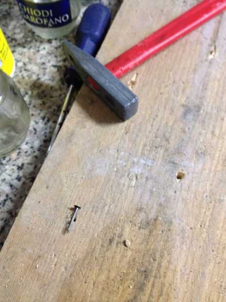 Después de taladrar los agujeros, martillo clavos, asegurándose de que estén colocados en el centro, entonces así poder insertar el alambre de cobre