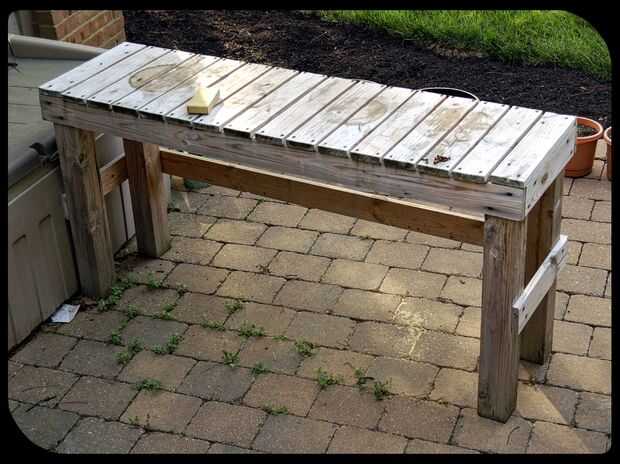En la foto es nuestro resultado final, junto con una foto de uno que construyó hace más de 5 años. Ha sido a través de Dereche vientos, tormentas de nieve, tormentas de hielo, burbujas de calor del verano, lo que sea. Es todavía como robusto, estable, y apretado como el día lo construyó. Ponemos 500 libras de gente en esta tabla al principio de la primavera, sólo para ver si sostendría up...not incluso un chillido.