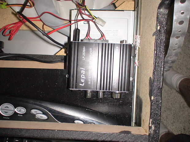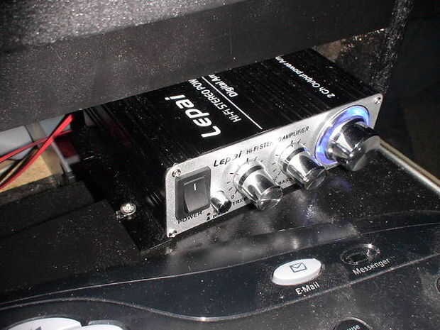 Montar el amplificador en la bandeja del teclado para hacer la perilla de fácil acceso, la forma en la parte trasera, par de tornillos que la sujetan hacia abajo.