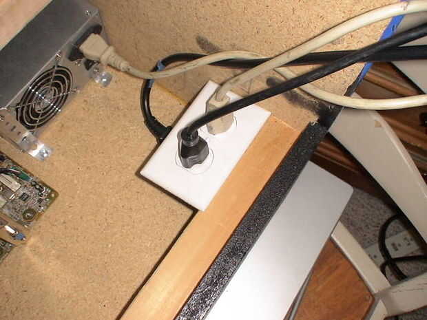 -Perfore los otros orificios para montar el disco duro o la fuente de alimentación. Usé el fleje de metal para el disco duro y la fuente de alimentación con algunos tornillos pequeños para madera.