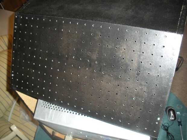 -Fijar el tablero perforado de masonite para cubrir al monitor.