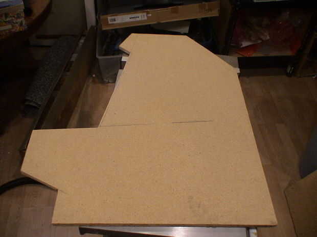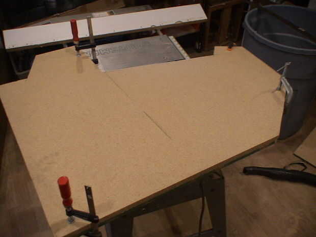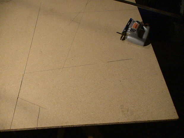 -Con una sierra de calar con una hoja gruesa (TPI 15 o así), con cuidado corte el panel. Corte fuera de las líneas es fácil de tomar más madera apagado, difícil de corregir errores. Así que tómate tu tiempo. Una imagen a continuación muestra un arreglo que hice con algunos Bondo a una arista del MDF.
