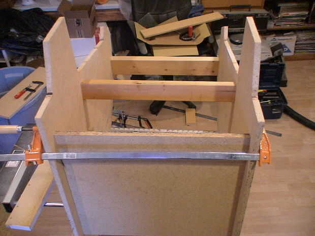 Panel de fondo: Para ayudar a estancia rígido y cuadrado ahora es un buen momento para montar el panel inferior.