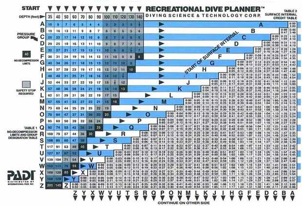 "No hay límites de descompresión" (cajas negras) - si se excede de este tiempo por menos de 5 minutos, tomar una parada de seguridad a 15 pies por 8 minutos y permanecer fuera del agua durante al menos 6 horas antes de otra inmersión. Si estás allí por más de 5 minutos, tomar una parada de seguridad de 15 minutos (aire suministro permitiendo) a 15 pies y permanecer fuera del agua durante al menos 24 horas. Esta profundidad debe superarse sólo en caso de emergencia. Equipo de perder no es una emergencia. Debe usted siente cualquier efecto de enfermedad de descompresión después de superficie, buscar atención médica lo antes posible (cámara hiperbárica). Esto no es algo que debe caminar solo. Planificar las inmersiones y esto no sucede ;)