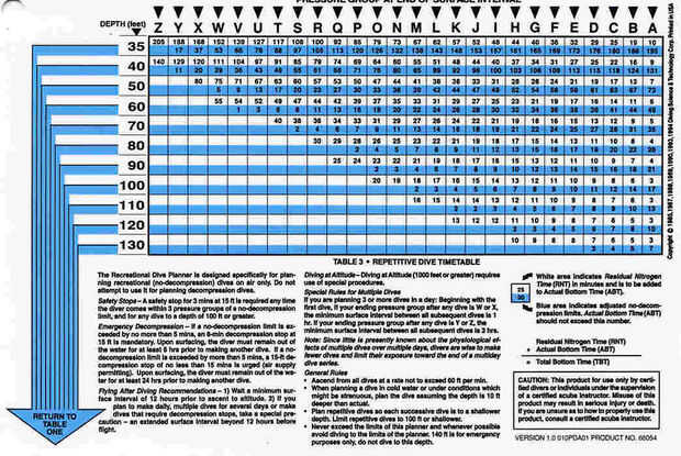Paso 8: Deslice el dedo por su prevista segunda profundidad de buceo de la fila hasta llegar a la columna de grupo de presión (digamos 40 pies--25/115 ')