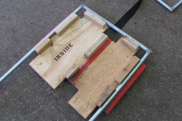 Tabla más grande. Las patas de la sección exterior deben ser 36". Corte el conducto fuera superior a 24". Las piernas del interior debería ser sección 34". Cortar el interior conducto superior a 22". La distancia entre las piernas exterior debe ser 22 1/8".