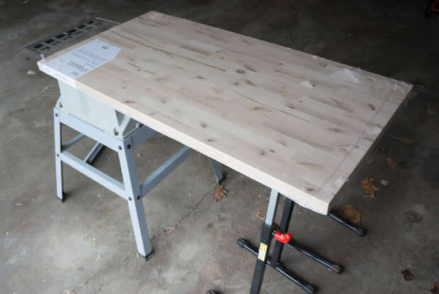 Empecé con un 25 "x 48" pedazo de bloque de carnicero que compré en una tienda llamada de Mendard por $70. Ya corté esta pieza hasta 5 tablas separadas, tiene el costo de cada regalo por menos de $15 cada uno, que estaba feliz con.
