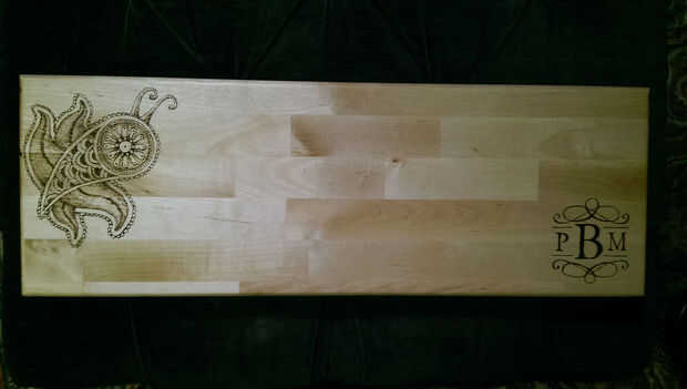 Una sugerencia: mi esposa sugirió que ella probablemente convertirá en hacer todo el corte en el lado de la Junta para proteger el diseño en ella. Suena como una sugerencia bien a mí. :)