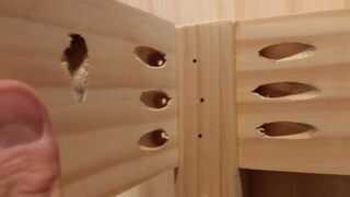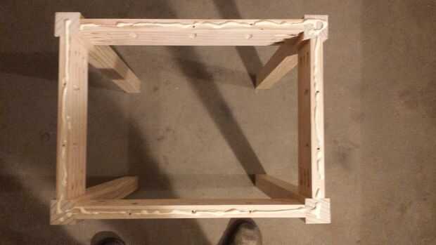 Perforación: Se necesita hacer los agujeros de bolsada primero para que no agriete la madera y hacer la tabla se ven mal. Usted tendrá que hacer agujeros en la madera que se utilizará para el frente, detrás, izquierda y derecha caras. Se hacen agujeros en la parte gruesa de la madera y hacer cuatro agujeros. dos en la parte superior e inferior para cada esquina de la madera. Se necesita hacer entonces los tornillos de las patas y caras para conectar la madera.