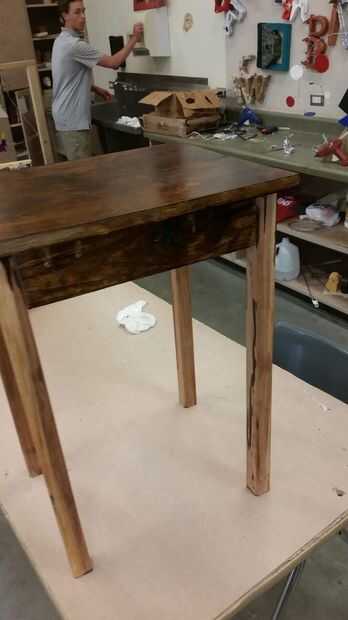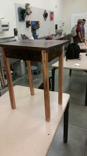 Colocar la parte superior: en este proceso usted tendrá que añadir la parte superior. La base está lista para añadir la parte superior. Usted tendrá que poner palillos de pegamento de madera sobre la base de que la parte superior. La parte superior se hace en dos piezas. Poner los dos pedazos juntos sobre la base para crear una parte superior. Después de esto dejó la tabla seca y endurece durante la noche. Después de esto está terminado, pero usted puede adornar su mesa. Usted puede pintar cualquier color que desee o puede manchar la mesa. Felicitaciones, se construyó una tabla. Hasta la proxima
