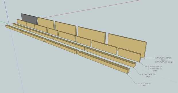 Corte: Para cada tabla usted tendrá que cortar la madera para tableros de conseguir cuatro 2 "x"2 "x 24" de los tableros para las patas, dos 1 "x 4 x 14" para el frente y la espalda caras, dos de 1 "x 4" x 10" placas de la izquierda y la derecha caras y dos de 1" x 8" x18.5" tableros de la mesa.