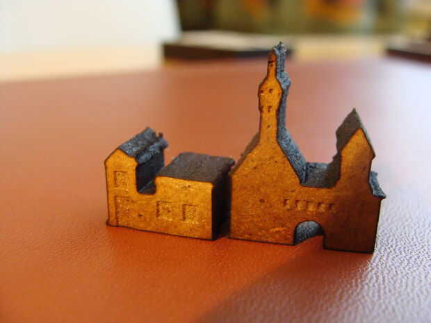 Solo cortar tantas carreteras, ciudades y aldeas mientras que usted necesita. Por supuesto necesita pintar estos para distinguir los diferentes jugadores. Asegúrese de grabarles en reliëf para que las ventanas son todavía visibles cuando usted pintar las piezas.
