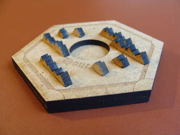 En primer lugar, cortar todas las piezas con la impresora láser y pegar los dos hexágonos a unos de otros. Cuando el pegamento ha secado, coloque una pequeña gota de pegamento en la parte inferior de los árboles. Normalmente, debe encajar perfectamente en los dos orificios que sirven para sostenerlas. Hacer esto hasta que hay no hay agujeros a la izquierda en el hexágono.