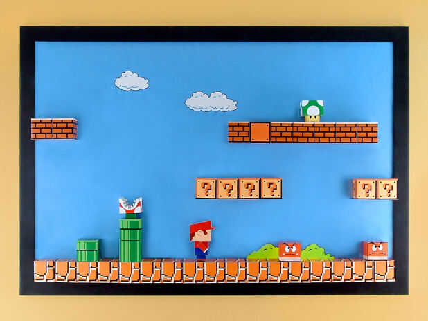 Cubeecraft tiene una impresionante selección de papercraft toys usando un diseño de caja de pegamento no inteligente. El arte de la cultura pop ventilador cubre personajes de TV, dibujos animados, video juegos, películas, libros cómicos y más. Te mostramos cómo combinar juguetes Cubeecraft, imanes y una cartulina imán de 24 x 36 pulgadas para crear una pantalla fría, 3-d, reconfigurable de nuestro videojuego favorito, Super Mario Bros. Para otras ideas de tablero 3D papercraft imán, revisa la página de Cubeecraft . Hay más de 200 diseños de personajes para elegir.