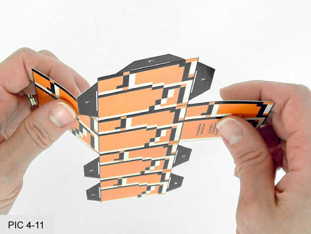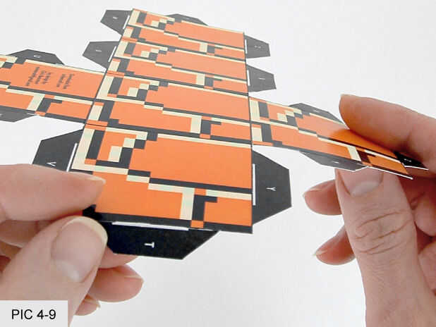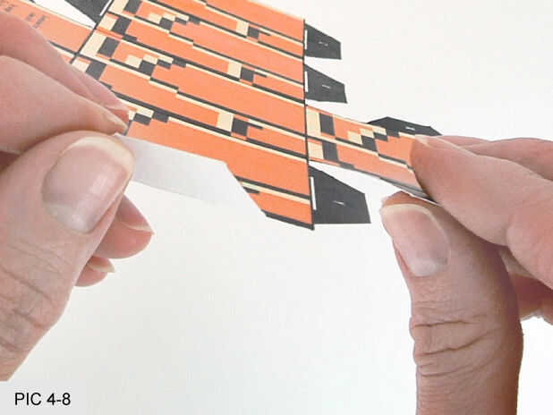 Usted querrá "lanzamiento" de cada una de las partes por lo que encajan fácilmente entre sí durante el montaje. Tome una parte y doblar en la dirección de la puntuación un poco. (FOTO 4-8) Luego dóblelo enfrente de la puntuación un poco. (FOTO 4-9) Para ello todas las partes. (PIC PIC 4-11, 4-10 FOTO 4-12)