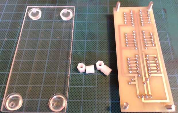 Coloque los pernos a través de los orificios de montaje de la placa de circuito y enganche, sin apretar las tuercas de soporte de nylon. Ofrecer la tarjeta de circuitos a la hoja de acrílico para asegurarse de que tiene la orientación correcta (lo he hecho muchas veces a imaginar que sería conseguirla orientado correctamente la primera vez). Si has hilado junta alrededor de dos veces y todavía no es adecuado... no se olvide que también puede entregar la hoja de acrílico y vuelva a intentarlo!