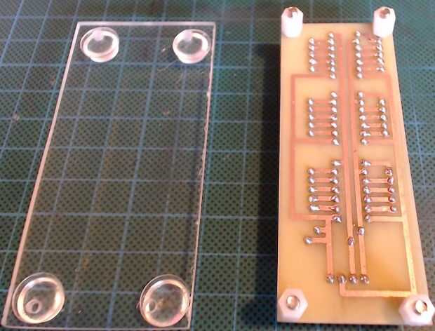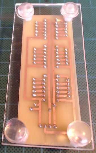 Ahora que el circuito está conectado a la hoja de acrílico... colocar las patas de goma autoadhesivas en la parte inferior del tablero. Las patas de goma son muy útiles por dos razones prácticas: