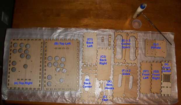 La consola consta de 20 partes: 14 partes más grandes y 6 chicos poco. Puesto que el tamaño de la consola es más grande que el área de trabajo de la cortadora del laser, las piezas más largas que se suturan - esto se hace bastante infalible por el empalme de jigsaw.