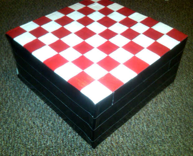 Por aspectos amor, así como para proteger el cartón de agua/derrames/desgaste, sentí que era necesario envolver los lados que no eran parte de la rejilla con una capa de cinta adhesiva. Para hacer esto, simplemente envolver capa tras capa de cinta adhesiva para conductos (negro en mi caso) alrededor de los bordes y laterales de la caja. Repita este proceso para la totalidad de la caja al descubierto, asegurándose de que se superponen los bordes de las tiras largas para que no cartón muestra. También siguen este proceso para el fondo de la caja, usando largas tiras mentido en una sola dirección para asegurar la eficiencia y la apariencia. (Ver fotos de aclaración)