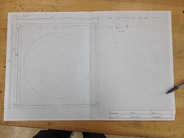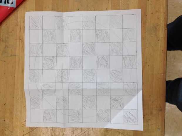 Para asegurar que todo lo encajan, compone un mock del tablero de ajedrez por cortar y pegar trozos de papel para crear un modelo a escala completa de la Junta. Esto me permitió ver la escala completa del tablero para asegurarse de que me gustó. Tuve dos obras importantes que afectaron a mi diseño. Yo tenía el papel que era un modelo a escala completa de la Junta, como se describe anteriormente, y también tuve mi dibujo técnico que tenía todas mis medidas y especificaciones. Recomiendo hacer estos dos para asegurarse de que la junta sale de la manera que se supone que (o cómo usted quisiera). Tanto se aprecia en las fotos.