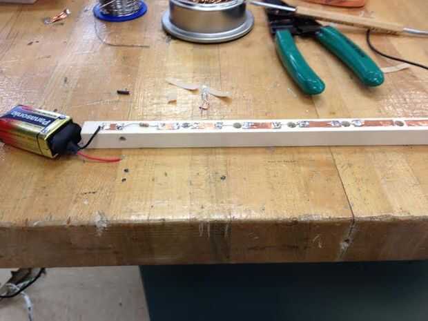 Una vez que termine esto, puedes empezar a cables de los LEDs. Yo les conectados en dos circuitos separados, ambos en serie. Esto era para asegurarse de que todos los LEDs tiene la cantidad correcta de tensión permanezca limpio y brillante. Estos fueron sólo dos circuitos simples con dos baterías de 9 voltios. Una vez que termine de cableado y probándolas, puede trabajar en el siguiente paso.