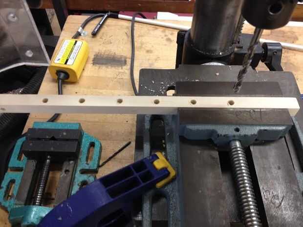 Puede comenzar por seis hoyos de perforación. Estos tendrán que alinear centrado en los mediados 6 cuadrados en la fila inferior. Esto puede ser mostrado en la tercera foto. Los agujeros se medirá en los siguientes puntos: