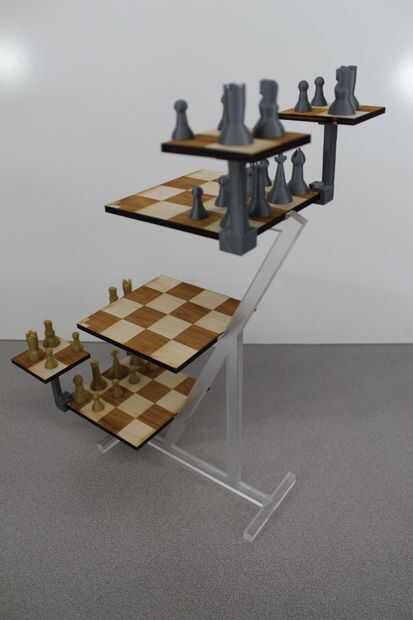 Ajedrez 3D se juega igual que el ajedrez tradicional, pero con la tercera dimensión añadida para promover el "pensamiento espacial". Piezas no fácilmente la transición entre los tres grandes tableros principales, sin embargo. Tableros más pequeños que pueden ser colocados por encima o colgados a lo largo de las esquinas de las principales representan "starships" que deben actuar como un puente para que las piezas a la cruz entre niveles. Incluso encontré un conjunto de reglas en las páginas de variantes de ajedrez. El giro de ciencia ficción al ajedrez tradicional y los matices fascinantes que puedan ser explotados me hizo querer ver este ajedrez en la vida real. Inspirado por esto, decidí que yo podría hacer un playable 3D juego de ajedrez utilizando el aula cortador láser y la impresora 3D. Para más información de proyectos de la clase y otros, puede consultar http://berbawy.com/makers/.
