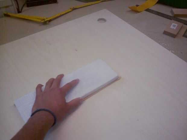 Ahora se trata de la puesta a punto, determinación de la calidad de la superficie board´s. Empezar a lijar la superficie con una lija 120, continuar con el 320. Cuando la superficie siente agradable y suave it´s tiempo para la primera capa de pintura.