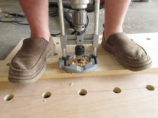 Pro Tip: teniendo en cuenta es agujeros tantas, puede que tenga que lidiar con una broca de taladro embotado en algún momento a través del proceso o puede afilar hasta las brocas antes de comenzar para los agujeros más limpios posible. A continuación se muestran enlaces con tutoriales gran dos, el primero te enseñará cómo afilar brocas de estilo forstner y el segundo le enseñará cómo afilar brocas de pala estilo.