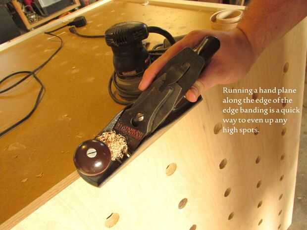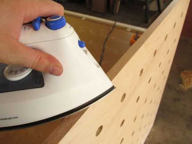 Si no eres un fan de los bordes de la madera expuesta entonces bandas de borde son sólo la herramienta para usted. Como mencioné en el paso de materiales, bandas de borde son que un adhesivo con respaldo chapa de madera que se puede aplicar a los bordes de la madera contrachapada para ocultar las capas, dando a su proyecto el aspecto de acabado madera. Usted puede hacer sus propias bandas de borde pero por facilidad que opté por comprar la versión comercial que viene precargada con un calor activado forro adhesivo. Todo lo que tienes que hacer para aplicarlo es sostener las bandas en su lugar con el lado adhesivo contra el borde de la madera contrachapada y usar una plancha de ropa para activar el adhesivo de Unión las bandas a la madera. Si desalineación las bandas que se pueden recortar el error mediante un plano de la mano o simplemente con una navaja filosa.