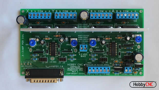 Construir tu propio tablero de regulador motor de alta corriente 4 ejes paso a paso para tu robot DIY, DIY molino o conversión del molino, DIY router o cualquier cosa que necesita para moverse. Este es un kit de construcción sí mismo de HobbyCNC.com.