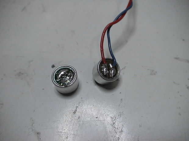 -El micrófono de electret tiene 2 almohadillas de soldadura, uno es soldado al agujero MIC y el otro se suelda con el agujero de centro compartido.