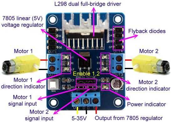 La tarjeta de controlador L298N Motor Driver es un módulo de muy bajo costo, hay varias variantes de diseño disponibles en el mercado, obtener de la mina de GEARBEST.
